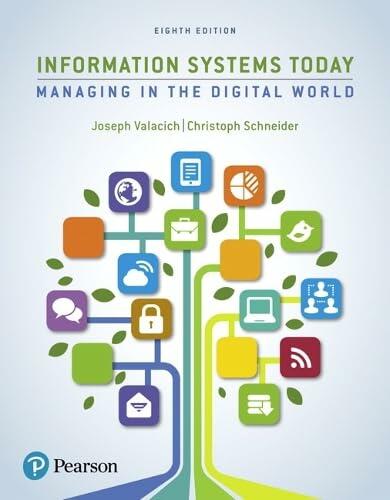 0134746007 / 9780134746005 Information Systems Today: Managing the Digital World Plus MyLab MIS with Pearson eText -- Access Card Package, 8/e Package consists of: 013460640X / 9780134606408 MyLab MIS with Pearson eText -- Access Card -- for Information Systems Today: Managing the Digital World 0134635205 / 9780134635200 Information Systems Today: Managing the Digital World